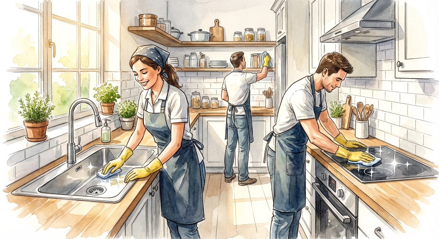 油汚れ・焦げ付きもスッキリ。清潔なキッチンで料理を楽しく。